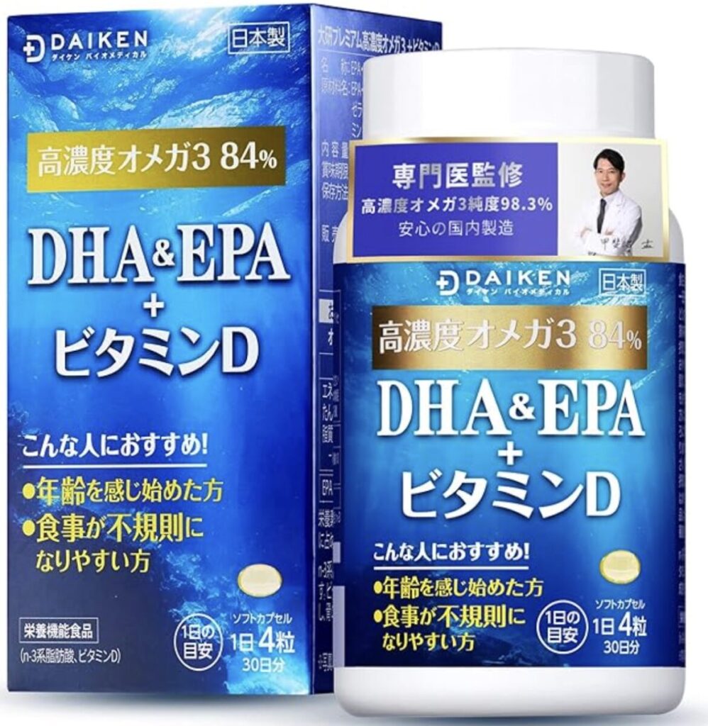 ダイケンバイオメディカルの「DHA&EPA+ビタミンD」 は、青魚由来のDHA・EPAとビタミンDを効率よく補給できるサプリメントです。