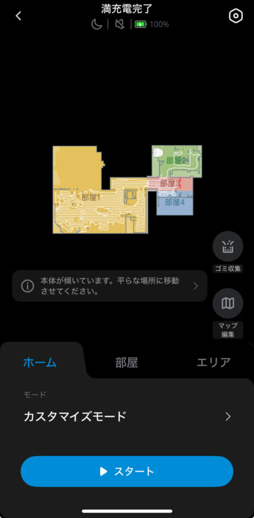 しかし、掃除完了後に本体のゴミを自動ゴミ収集ステーションへ移動させる際の吸引音は、十数秒間ですが「掃除機の強モードのような大きな音」がします。このため、夜間や早朝に掃除を完了させるスケジュール設定は避けた方が良いかもしれません。